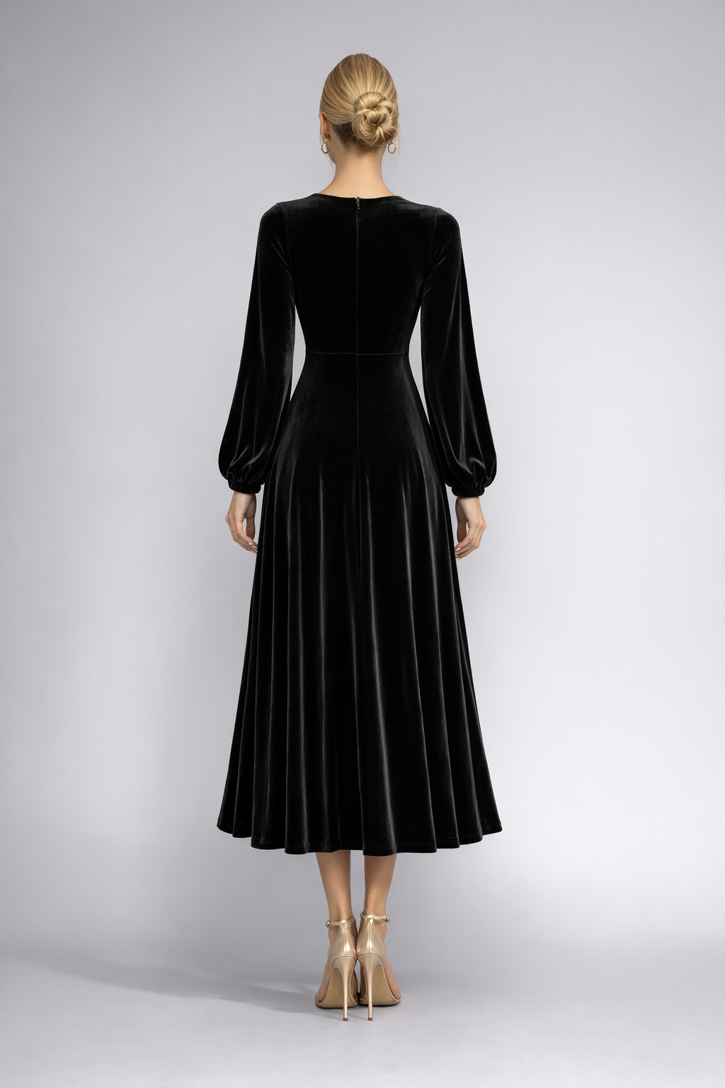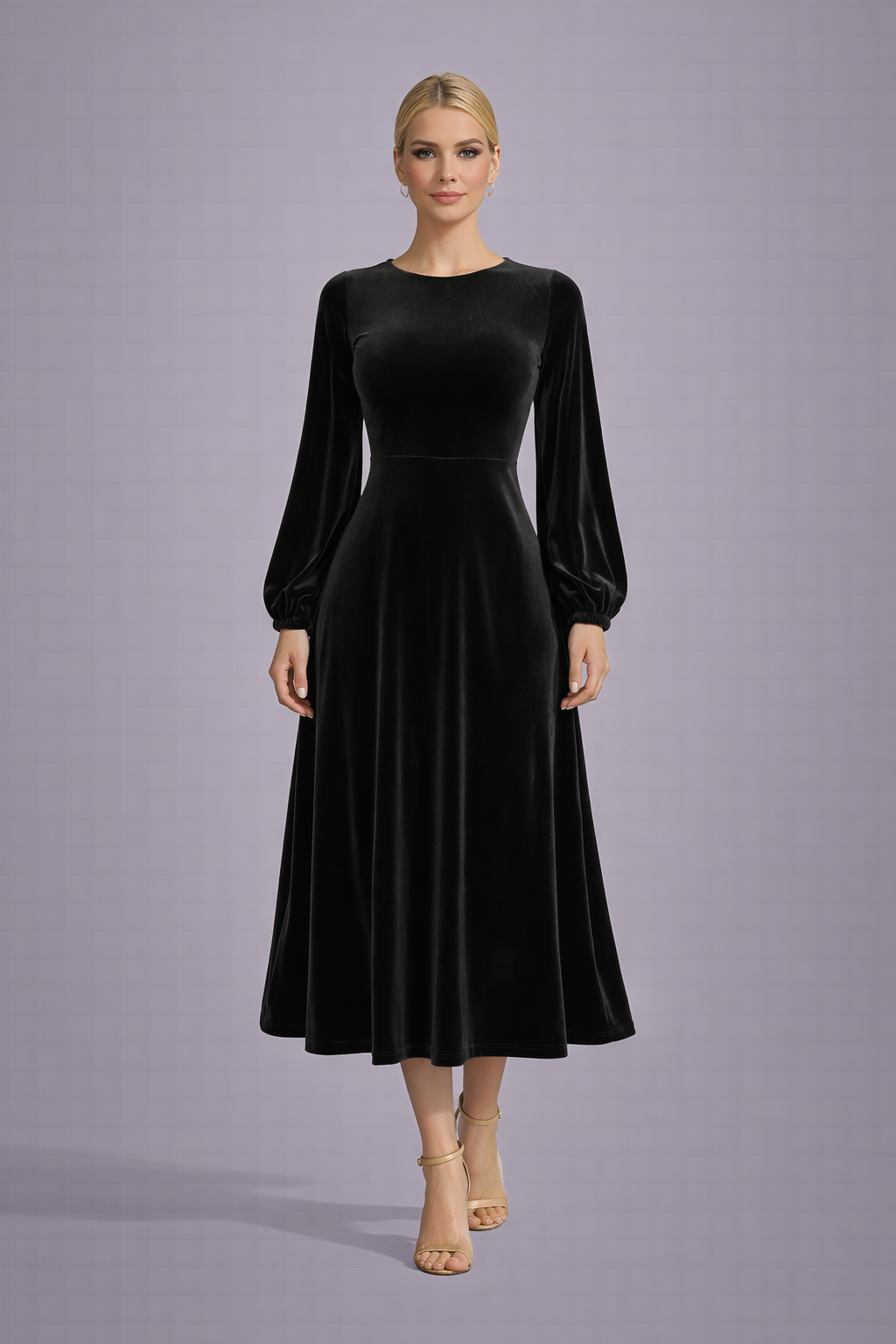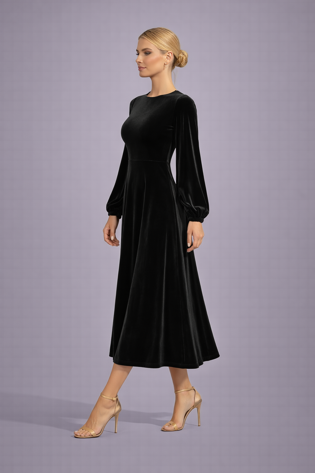 ZİERNA İTALYAN KADİFE MİDİ ELBİSE